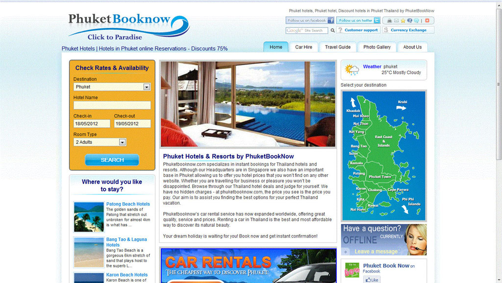 Phuketbooknow.com is a leading hotel booking system, specializes in instant bookings for Thailand hotels and resorts. A total of six XMLs including GTA, Tourico, DTOW, Hotelbeds, HotelsPro are integrated under current scope of project.